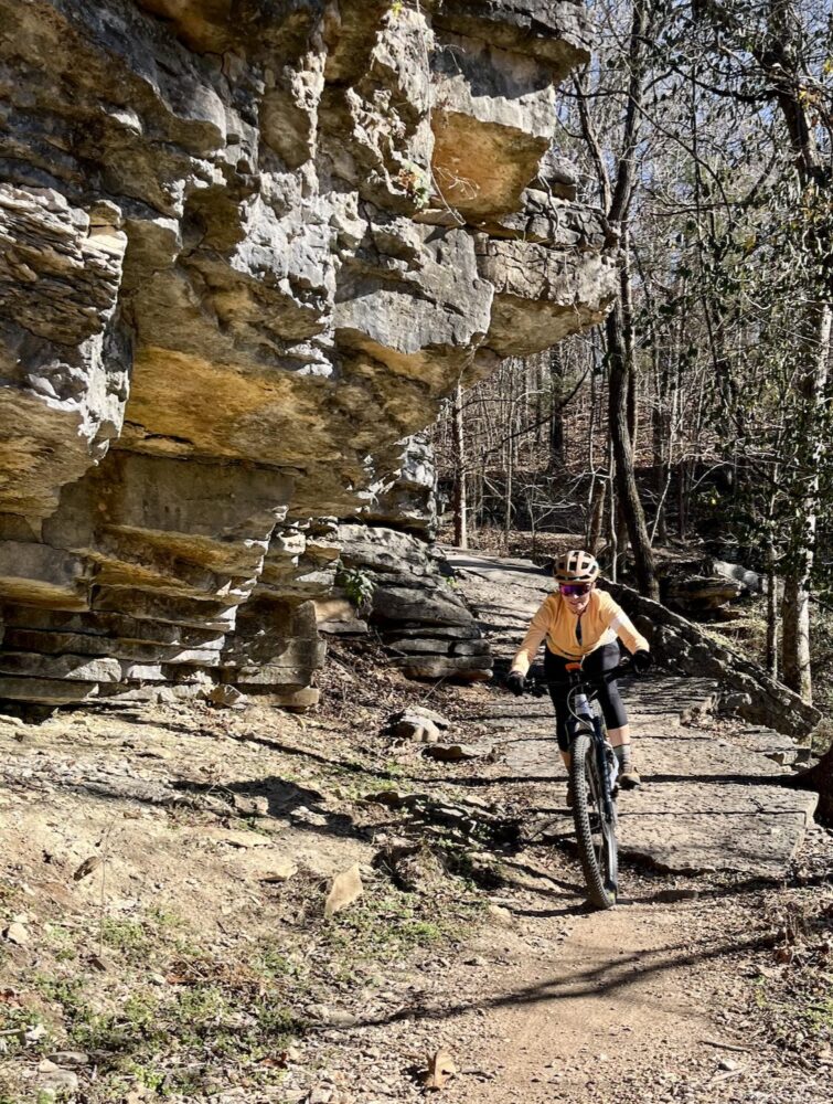 The mark of a truly fun destination is when you keep coming back; we routinely visit Bella Vista, Arkansas, twice a year, with the goal of adding a third extended stay.  We road-tripped from West Michigan in early December (about 11 hours) to soak up year-round riding in a much more favorable climate. Snow sports and fat biking are cool for a bit, but give me the dirt, Ozark rocky terrain, and trails for the win. There’s always something new to discover in Bella Vista, e-bikes are encouraged, and you just can’t beat the connectivity to 100’s of miles for all levels of riders. Plus, WOZ (Women of Oz) offers women-specific bike experiences, and the new OZ Bike Park is in the works, with lift-served downhill riding slated to open in summer 2026.