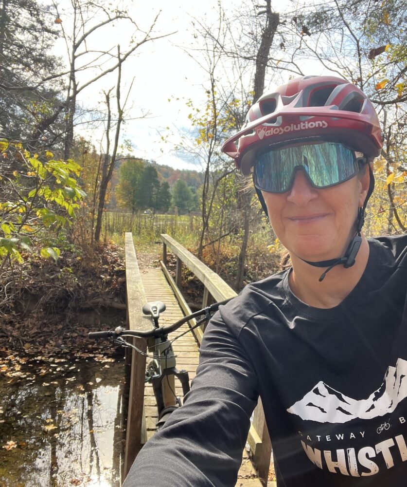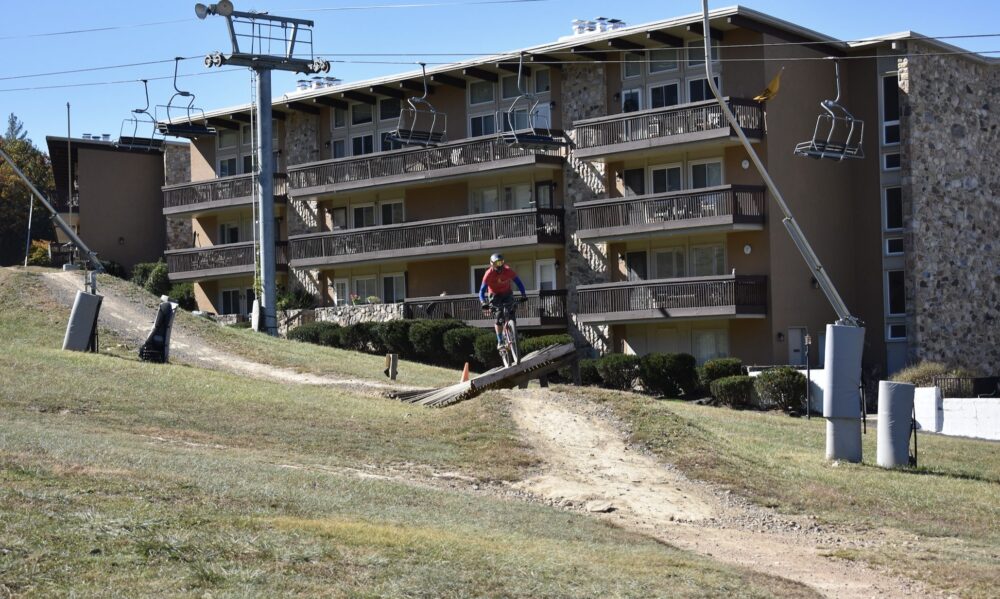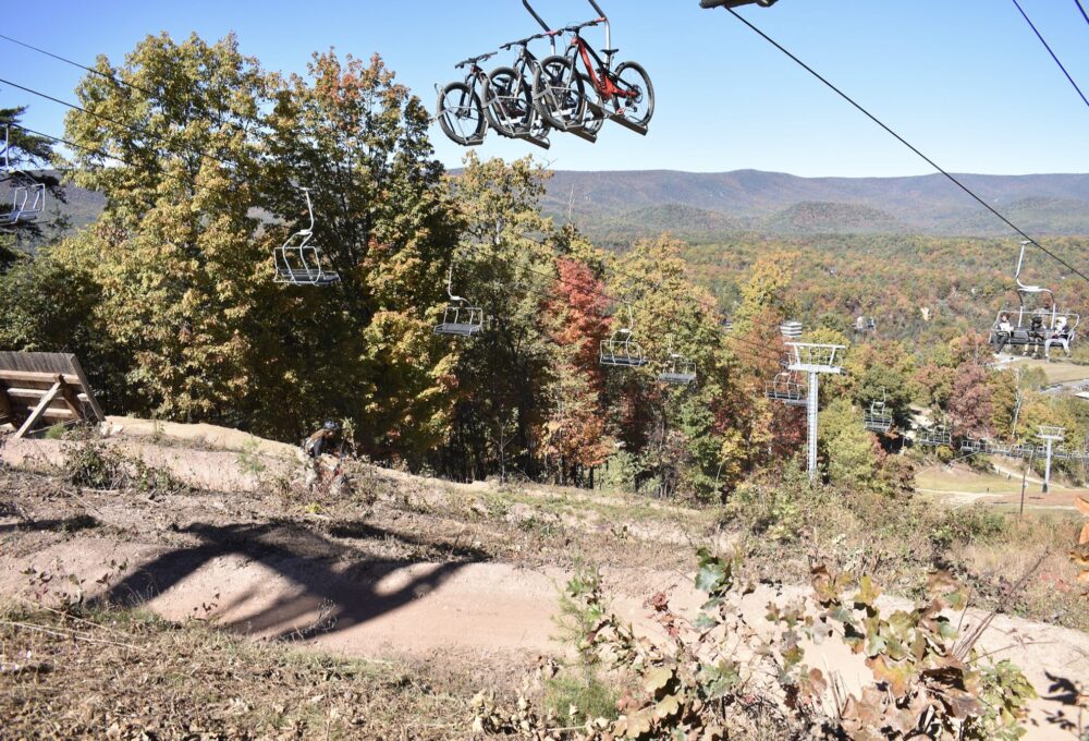 With one day remaining, I decided to pedal my bike up a hill. Not needing anymore adrenaline-fueled runs at Bryce Resort Bike Park, I chose an XC route that led around the golf course, connecting with Crooked Run Road, which took me on a long, 8-mile climb to the top of the North Mountain Trail. It was a slow roll, and my quads seemed perturbed at the choice. I reminded them that the stunning Shenandoah views were worth the effort. My two-hour slow churn was rewarded by a fast gravel descent with bright falling leaves bouncing off my helmet. I arrived back at Bryce and plunked down in a recliner Adirondack chair to devour my PBJ lunch. From my perch, I watched bike park riders descending, jumping the wood wall gap, fist-bumping, and returning to the chair for the next run.